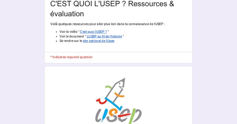 Voilà quelques ressources pour aller plus loin dans la connaissance de l'USEP : Voir la vidéo " C'est quoi l'USEP ? " Voir le document " L'USEP au fil de l'histoire " Se rendre sur le site national de l'USEP